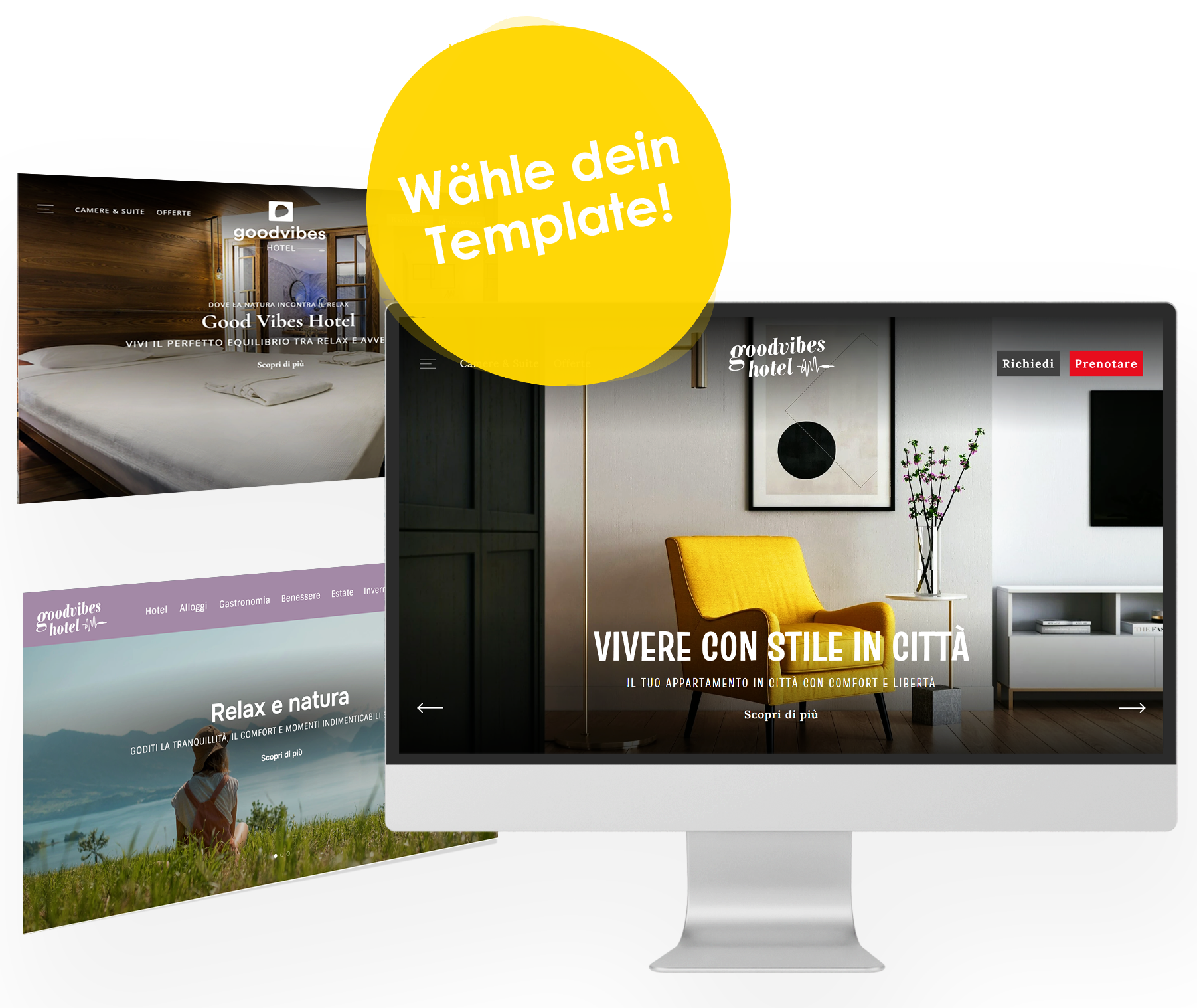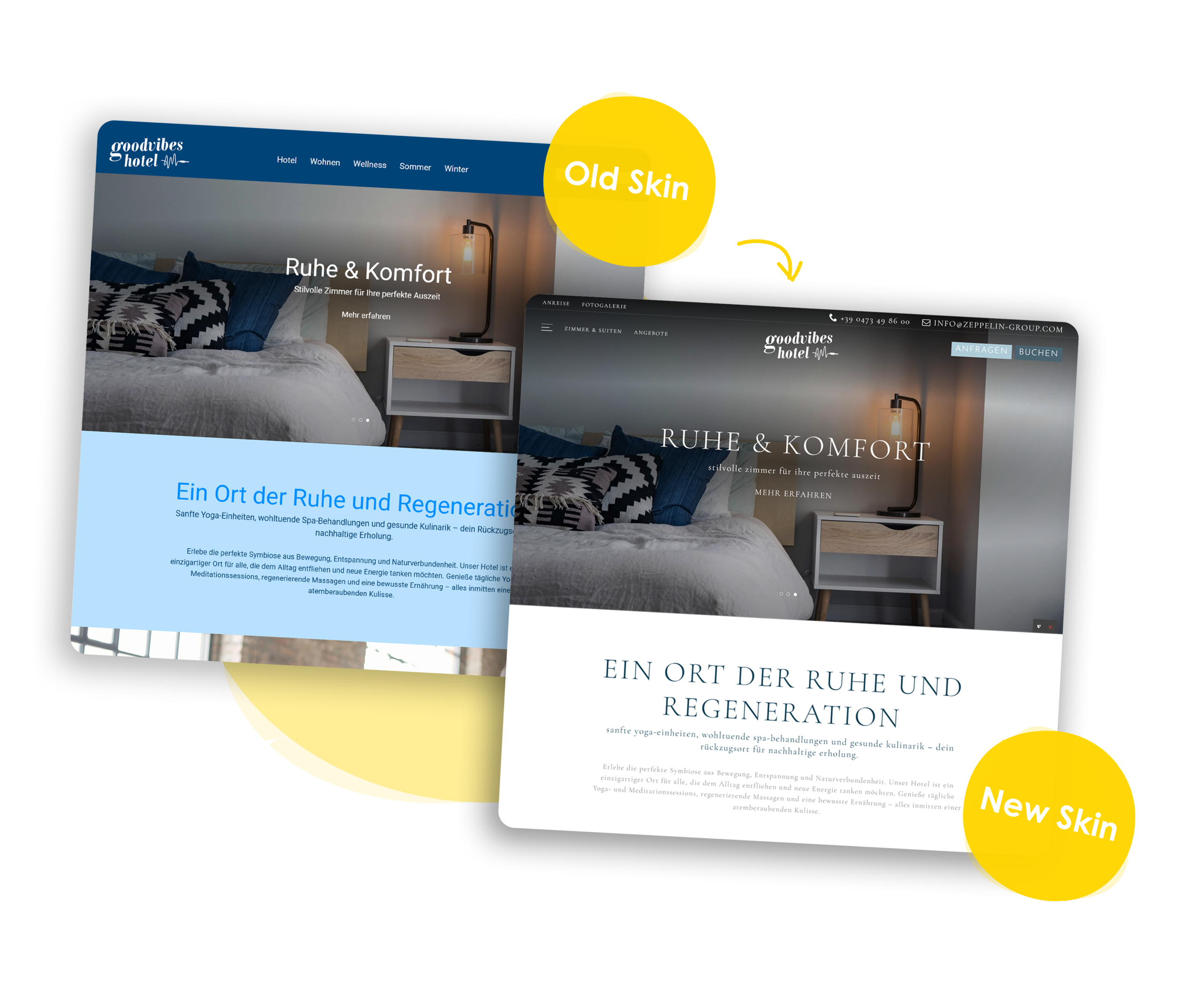 The starting point for your hotel website is a template of your choice. It forms the basis and is refined with flexible modules so that it perfectly matches your brand, your style and your individual requirements.