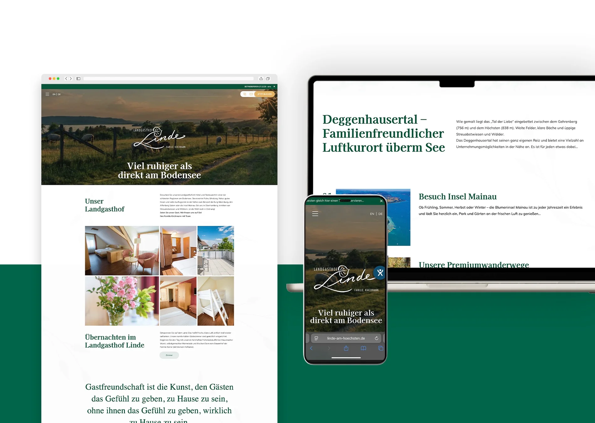 Der neue Webauftritt von Landgasthof Linde am Höchsten vereint Tradition und Modernität. Ziel war es, die gemütliche Atmosphäre und die hohe Qualität des Gasthofs auf eine ansprechende und benutzerfreundliche Weise online erlebbar zu machen. Mit einer klaren Struktur und einem modernen Design haben wir einen Webauftritt geschaffen, der sowohl die regionalen Spezialitäten als auch die familiäre Gastfreundschaft authentisch widerspiegelt. Gäste können sich nun unkompliziert über das Angebot informieren und ihren Aufenthalt schnell und einfach vornehmen.